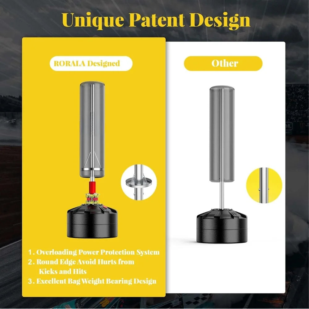 - 【Stable Floor Sucking Base】: 7.5MM thicken ABS base bears 140kg weight easily, supported by 12 strong suction cups help keep the heavy bag in position on smooth and even floors. The base weighs up to 203lbs when filled with sand for max stability. For Less Vibration, Please remove the springs.